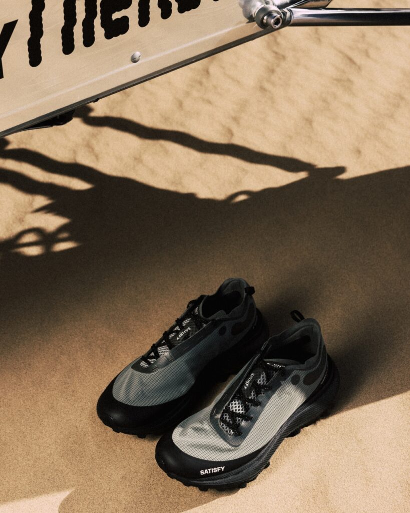 In 2025, Satisfy took a significant step beyond apparel with the launch of its first trail running shoe — The Rocker. This release marked a major milestone for the brand, signaling its evolution from a niche fashion-inspired running label into a fully integrated performance outfit with technical footwear capabilities. The Rocker embodies Satisfy’s design ethos: blending thoughtful engineering, cultural identity, and forward-thinking aesthetics.