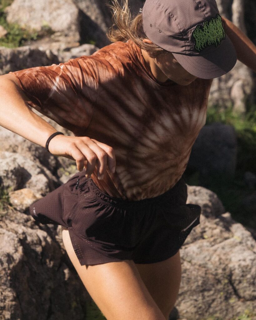 Satisfy doesn’t look or feel like typical technical running gear. Instead of neon, big logos, and performance-only visuals, the brand opts for muted tones, minimalist design, and textures that recall vintage fashion and subcultural aesthetics such as punk, grunge, and downtown art scenes.