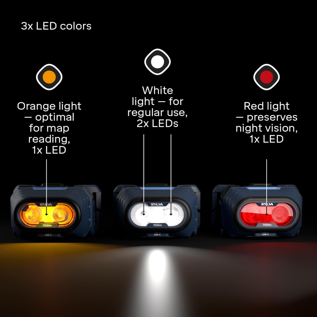 700 lumens is the headline figure, and at max output over a claimed 115-metre beam distance, the Explore 5 is genuinely impressive. But here’s what Silva gets right that the spec sheet doesn’t fully convey: the quality of the light pattern. Silva calls it « Intelligent Light » — a combination of a long-reach spot and a close-range flood that work together in a single beam. In practice, it means you’re not choosing between seeing far away or seeing what’s right at your feet. Both are covered simultaneously, and that makes a real difference when navigating technical terrain.